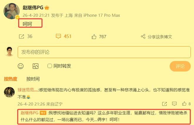 赵继伟先是通过个人社交媒体发了“呵呵”这两个字。正当大家都在猜测他想要向外界传递的信息时,为了不被误解,或者是避免被过度解读。所以赵继伟对“呵呵”二字又进行了解释。
