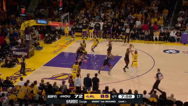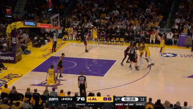 首轮G1,湖人主场107-98战胜火箭。