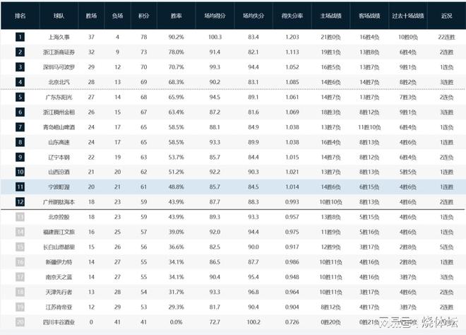 北京时间4月20日晚,2025/26赛季CBA常规赛,第41轮比赛全部战罢。至此,本赛季季后赛席位已经敲定11支球队,新增宁波男篮晋级。此外,常规赛争四也提前结束,广东男篮输球退出争夺,深圳、北京皆提前1轮锁定前四名。