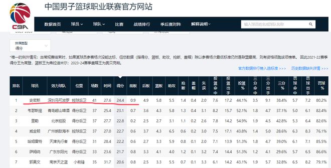 41轮过后,出场41次,他的场均得分暂居联盟榜首,国际球员累计贡献值得分第一。他当选最佳国家球员实至名归。