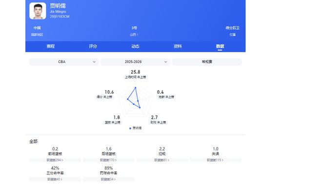 最佳第六人预计是山西男篮贾明儒。截至常规赛第40轮,贾明儒共出场39次,仅16次首发,替补出场次数大于首发,具备评选资格。
