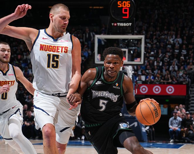在系列赛前三场比赛,森林狼总分2-1领先。本场掘金缺少沃特森,戈登迎来复出。首节开局仅79秒,森林狼率先内外开花取得5-0领先,但迪文琴佐随后无对抗受伤,遭遇右跟腱撕裂退赛宣告赛季报销。约基奇攻传结合率领掘金逐步反超比分,双方持续紧咬比分拉锯战缠斗,首节约基奇9中5贡献全能10+5+4+1,爱德华兹被限制6中1仅得到3分。双方首节进攻效率均不高,掘金26中10,其中三分6中1,森林狼22中9,其中三分6中3,首节比赛结束掘金23-22领先森林狼。