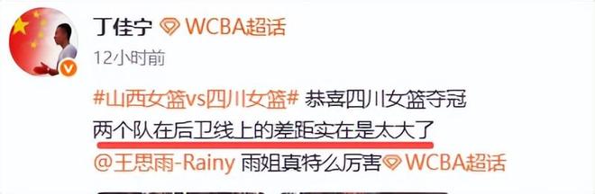 赛后裁判专家丁佳宁说,山西队输在后卫线,他原话是:“两个队在后卫线上的差距实在是太大了”。说得没有错,山西队四个后卫一共得28分,而四川队仅两个国内后卫就联手轰30分,可以说四川队的王思雨和李缘打爆了山西队后卫线。而山西队现役国手后卫陈玉婕更是显得尴尬,她全场只有一次助攻和6分,被早已离开国家队的李缘完爆,李缘很好的串联了全队,不但有抢断,还有三分,全场三分5中3,提供两个助攻和三次抢断,数据非常全面。而现役国手陈玉婕仅得6分和1个助攻,全场在外线没有出手,与李缘的差距实在是大。