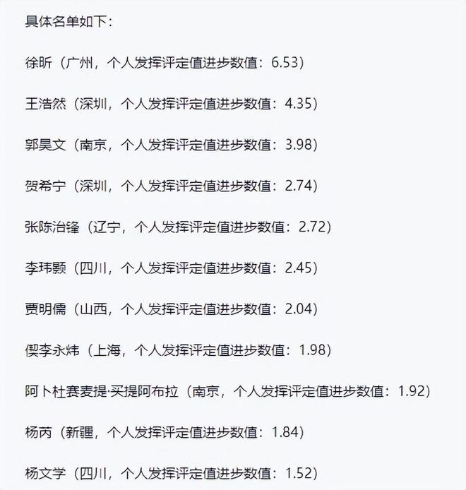 在这四个奖项中,常规赛MVP和最佳防守球员的奖项基本上不会落在徐昕头上,但在最佳阵容的评选中,徐昕即使进不了一阵,也会在二阵中。另外最具进步球员的评选,这个奖项基本上可以说是没有悬念了,可以说非徐昕莫属,因为这个奖项的评选标准比较清楚,就是看哪名球员的进步幅度最大,徐昕的优势实在是太明显了。