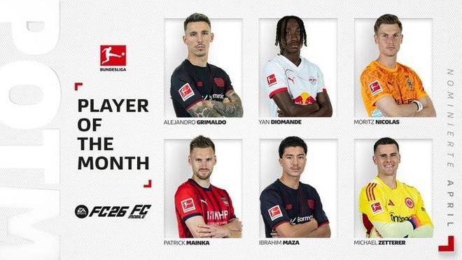 北京时间4月22日,德甲官方公布了4月最佳球员的候选名单,其中扬-迪奥曼德、格里马尔多、迈因卡、马扎、莫里茨-尼古拉斯、泽特尔在列。